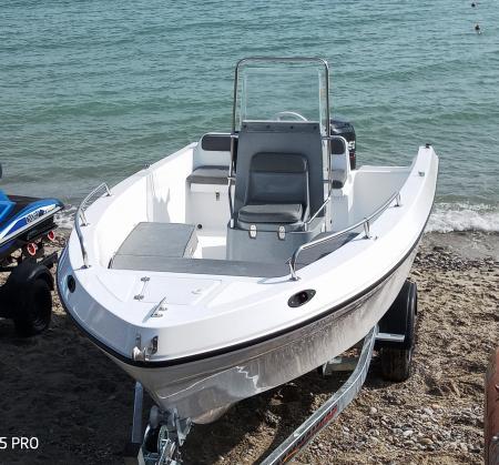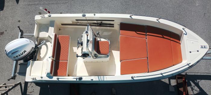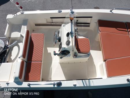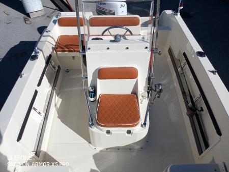 Βασικός εξοπλισμός Κεντρική κονσόλα μέ 2ο ποτηροθήκες στό κάθισμα τής κονσόλας, κάθισμα καί αποθηκευτικό χώρο. Ηλεκτρολογική εγκατάσταση: Γενικό διακόπτη ρεύματος, Ηλεκτρολογικό πίνακα, Πρίζα 12Volt, Πρίζα USB, Κόρνα, Αντλία σεντίνας 700 GPH μέ διακόπτη καί αυτόματη. φώτα πορείας, περίβλεπτο / αγκυροβολίου σέ ιστός αποσπώμενος. Ανοξείδωτα ΙΝΟΧ : Κάγκελο κονσόλας μέ χειρολαβές στό κάθισμα, Κάγκελα κουπαστής στήν πλώρη, Χειρολαβή συνοδηγού, Ράουλο άγκυρας, 3ης δέστρες καταστρώματος, Πλατφόρμα πολυεστερική μέ ΙΝΟΧ σκάλα συρόμενη. Μηχανισμός τιμονιού : βαρέως τύπου μέ τιμόνι ΙΝΟΧ καί επένδυση. Κρεβάτι τρειών ατόμων μέ μαξιλάρια, μαξιλάρια στά καθίσματα, Αυτοαδειζόμενο κατάστρωμα μέ 2ο ανεπίστρεπτες υδρορροές, Ενσωματωμένη λεκάνη (γιά πάγο - τρόφιμα) μέ απορροή καί τάπα, Ενσωματωμένη βάση βοηθητικής μηχανής.