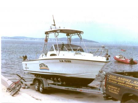Στρίτσο αυτοαδιαζόμενο, διπλός ουρανός καμπίνας με Χάτς αερισμού, καμπίνα επενδυμένη με μοκέτα, φωτισμό καμπίνας, τριπλή βάση καλαμιών μέσα στην καμπίνα, κρεβάτι τριών ατόμων με στρώματα και 4 αποθηκευτικούς χώρους, παρμπρίζ ασφαλείας, 2 καθίσματα περιστρεφόμενα με μαξιλάρια, τιμόνι βαρέου τύπου, ηλεκτρική εγκατάσταση με ασφαλοδιακόπτη 6 θέσεων, φώτα πορείας και αγκυροβολίου, αντλία σεντίνας με διακόπτη και αυτόματη, ντεπόζιτο 400 λίτρων περίπου με όργανο, 2 λεκάνες πάγου αυτοαδιαζόμενες, θήκη στον έξω χώρο, 2 λεκανάκια με καπάκια στην πρύμνη αυτοαδιαζόμενα, κατάστρωμα αυτοαδιαζόμενο με βαλβίδες, κυματοθραύστης με υδροροές του χώρου. Ανοξείδωτα : κάγκελο πλώρης, λαβή συνοδηγού, 2 καλαμοθήκες μάχης, 4 δέστρες καταστρώματος, τιμόνι.