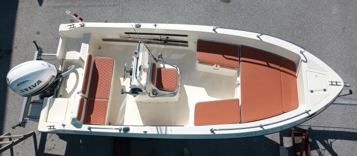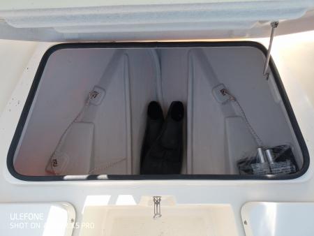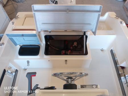 Βασικός εξοπλισμός Κεντρική κονσόλα μέ 2ο ποτηροθήκες στό κάθισμα τής κονσόλας, κάθισμα καί αποθηκευτικό χώρο. Ηλεκτρολογική εγκατάσταση: Γενικό διακόπτη ρεύματος, Ηλεκτρολογικό πίνακα, Πρίζα 12Volt, Πρίζα USB, Κόρνα, Αντλία σεντίνας 700 GPH μέ διακόπτη καί αυτόματη. φώτα πορείας, περίβλεπτο / αγκυροβολίου σέ ιστός αποσπώμενος. Ανοξείδωτα ΙΝΟΧ : Κάγκελο κονσόλας μέ χειρολαβές στό κάθισμα, Κάγκελα κουπαστής στήν πλώρη, Χειρολαβή συνοδηγού, Ράουλο άγκυρας, 3ης δέστρες καταστρώματος, Πλατφόρμα πολυεστερική μέ ΙΝΟΧ σκάλα συρόμενη. Μηχανισμός τιμονιού : βαρέως τύπου μέ τιμόνι ΙΝΟΧ καί επένδυση. Κρεβάτι τρειών ατόμων μέ μαξιλάρια, μαξιλάρια στά καθίσματα, Αυτοαδειζόμενο κατάστρωμα μέ 2ο ανεπίστρεπτες υδρορροές, Ενσωματωμένη λεκάνη (γιά πάγο - τρόφιμα) μέ απορροή καί τάπα, Ενσωματωμένη βάση βοηθητικής μηχανής.